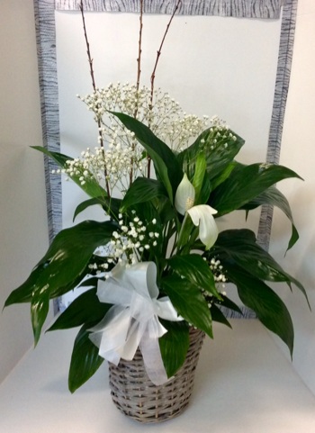 Spatiphillum decore avec fleurs de soie et cache-pot (Grand format)