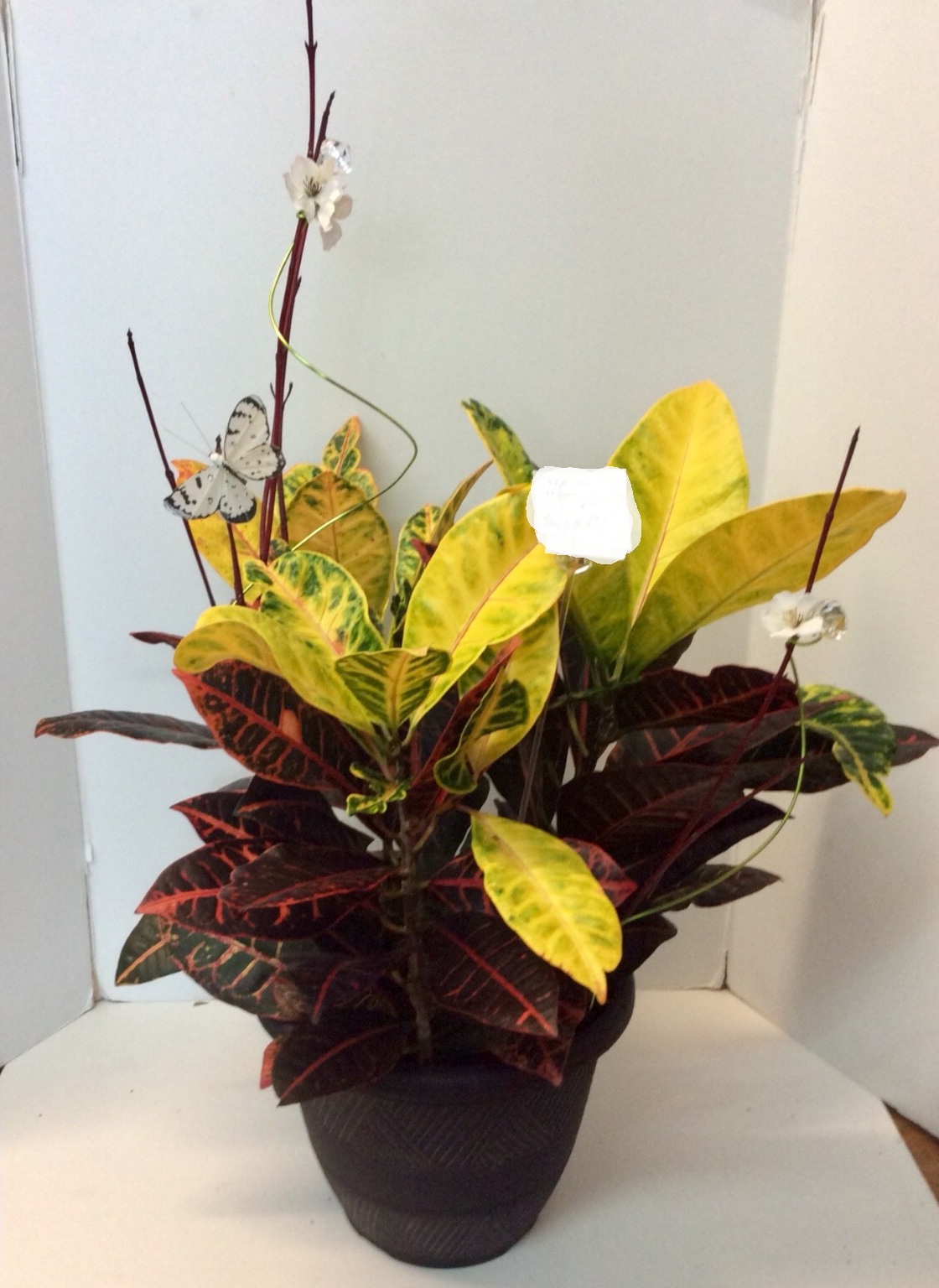 Draceana Marginata decore avec fleurs de soie et cache-pot