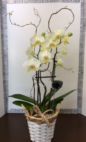 Yucca 3 poles decore avec fleurs naturelles et cache-pot