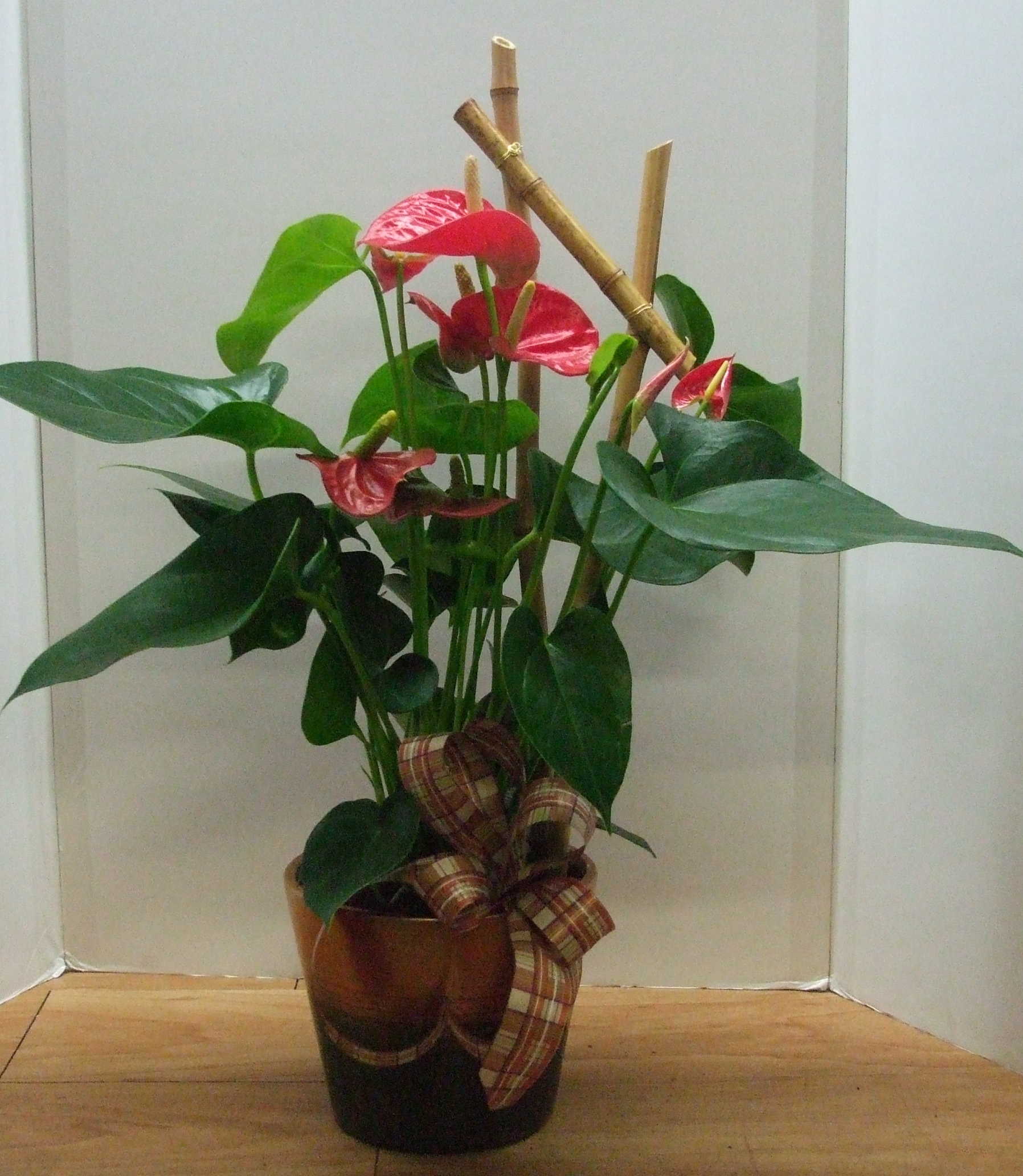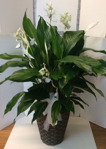 Spatiphillum decore avec fleurs de soie et cache-pot (Grand format)