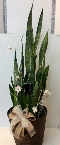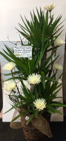 Yucca 3 poles decore avec fleurs naturelles et cache-pot