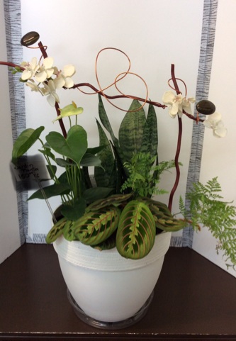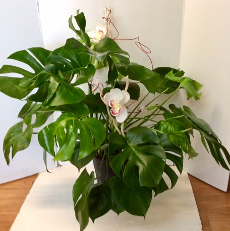 Draceana Marginata decore avec fleurs de soie et cache-pot