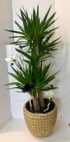 Yucca 2 poles decore avec fleurs de soie et cache-pot