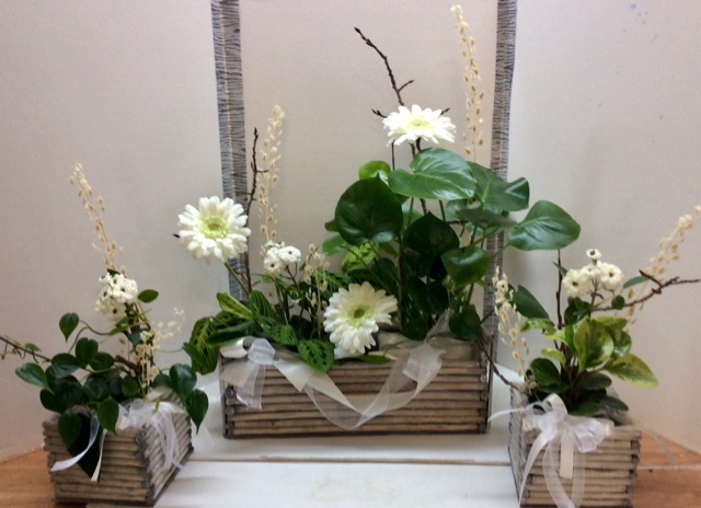 Trio de Jardins de plantes decores avec fleurs de soie et cache-pot